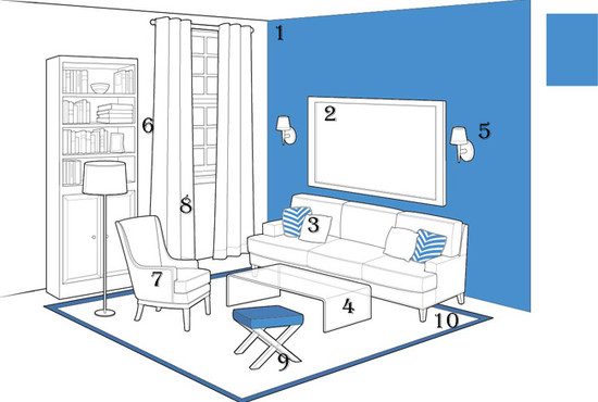 • Используйте свет хотя бы в трех углах комнаты, чтобы не было слепых затененных мест.