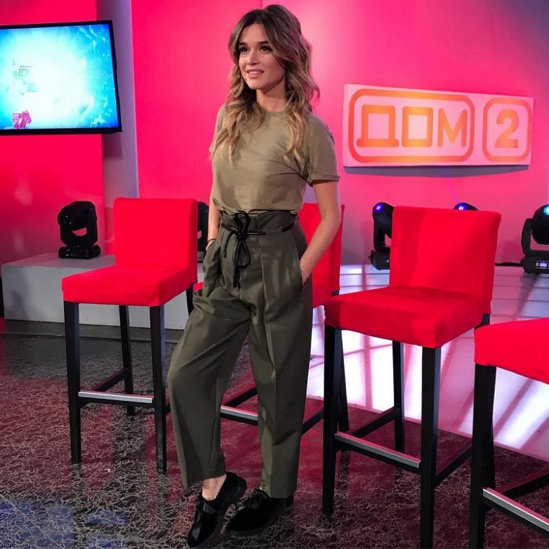Бородина выбирает модели с завышенной талией классической длины. Комбинирует их с приталенным жакетом того же оттенка. Такое сочетание стройнит и позволяет казаться выше.