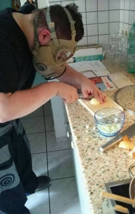 ЧИСТЯТ лук на одной-единственной фотке, и там слезами и не пахнет. На всех остальных лук НАРЕЗАЮТ!