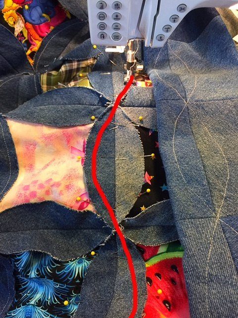 Я начала отмерять квадраты с обратной стороны джинсов.