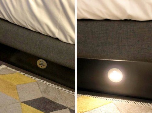 Кровать в отеле с лампой с датчиком движения, чтобы можно было вставать в темноте