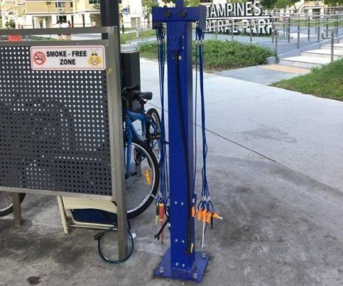 Парковка для велосипедов, которая предоставляет инструменты для небольшого ремонта
