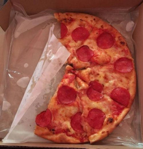 Запечатанный пакет с горячей водой под пиццей, чтобы она как можно дольше не остывала.