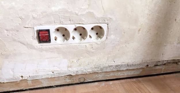 Да, вместо установки розеток этот гений просто вмуровал удлинитель в стену
