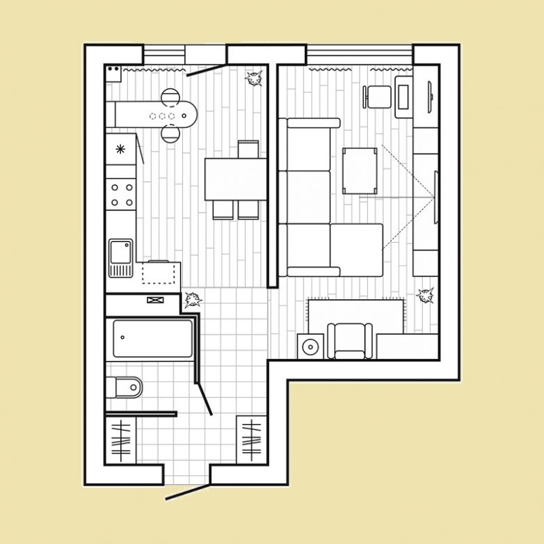 На самом деле ты платишь за острые углы и выступы, которые практически невозможно функционально использовать. Так что на этапе просмотра квартиры подумай, куда можно поместить шкаф, диван и другую объемную мебель. Иногда меньшая площадь может оказаться более выгодной для жизни и ремонта.
