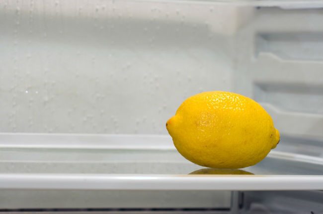 Раствор лимонного сока в воде 1:1 прекрасно очистит ваш холодильник. Можно добавить пищевой соды, чтобы оттереть пятна.