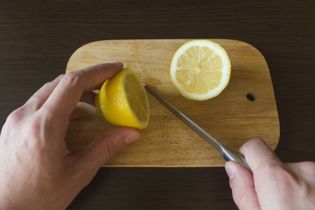 Протрите всю доску половинкой лимона, засыпьте крупной солью и оставьте на 10−15 минут. Затем сотрите соль тем же лимоном и прополощите доску теплой водой.