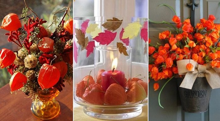 Благодаря интересному свойству, а именно, сохраняться несколько месяцев без воды, декоративный физалис прекрасно подходит для украшения дома осенью.Плоды физалиса с позолоченными лепестками станут отличным украшением и подарком, сделанным своими руками.