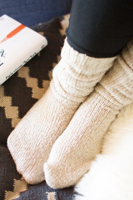 Выверните заготовку наизнанку и придайте носовой части форму овала — так, чтобы будущие носки удобно сидели на ноге.Пришейте края заготовки друг к другу вручную или с помощью швейной машинки. Выверните носки и наслаждайтесь проделанной работой!