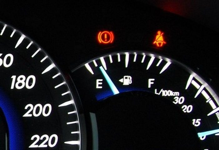 Когда в машине заканчивается бензин, на панели управления рядом со спидометром загорается оранжевый или красный, как правило, значок бензобака. Это свидетельствует о том, что пора заправить автомобиль. Однако иногда, в некоторых моделях, там ещё и мигает стрелочка, указывающая на то, а где собственно находится этот самый бак. Некоторым молодым и неопытным водителям помогает
