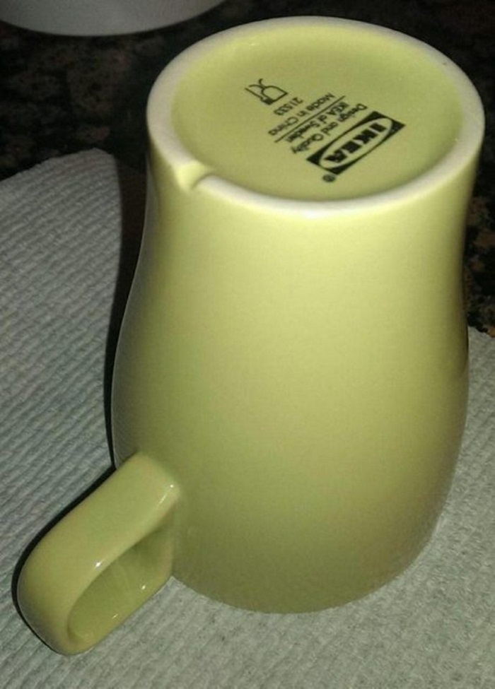 Она есть не во всех, но во многих современных моделях. Такая, знаете, в ней ещё особенно сильно остаётся налёт от кофе или некачественного чая. Знаете, зачем она нужна? Для того, чтобы удобнее было использовать чашку в посудомоечной машине! Ха, наивные европейцы. Неужто они не знали, что 99% населения моет чашки руками?