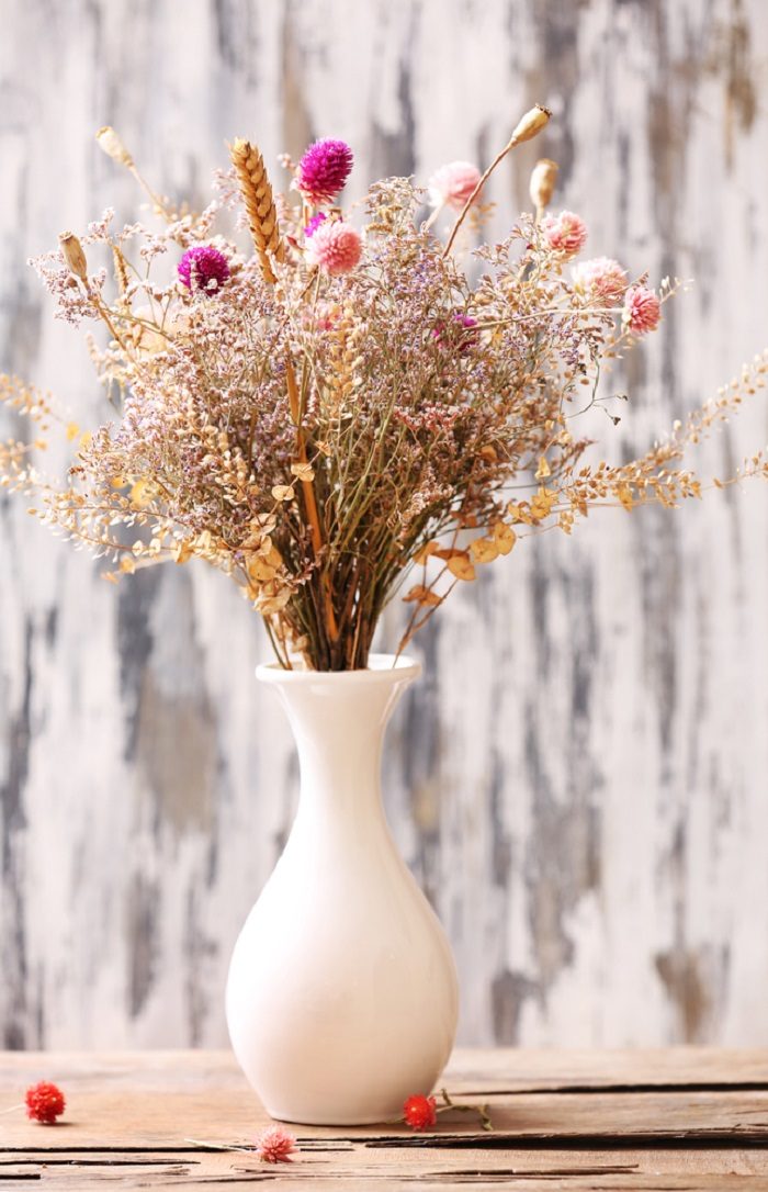 Однако композиции и букеты из сухоцветов недолговечны. Обычно их создают на осенне-зимний период, после чего они теряют свою декоративность и их заменяют более привлекательными живыми цветами.