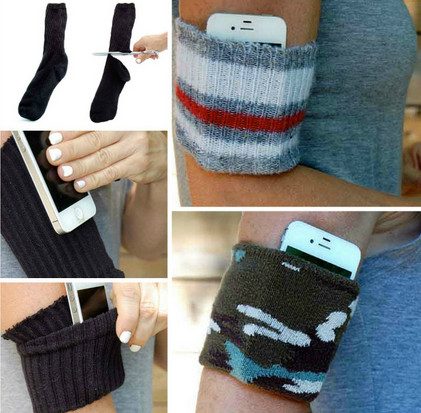 У современных садоводов есть проблема, с которой не приходилось сталкивать более старшему поколению. Нужно постоянно думать о том, чтобы не потерять мобильный телефон. Удобный аксессуар из старого носка можно надеть на руку. Теперь вы всегда можете быть на связи, слушать музыку или аудиокнигу во время садовых работ.