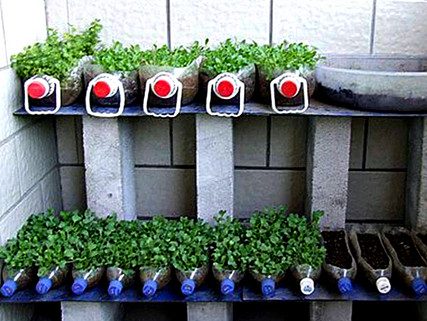 Вы можете значительно увеличить площадь посадки, если разрежете бутылку вдоль и положите на бок. Так в одну бутылку поместиться больше растений.