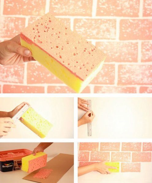 Создать имитацию кирпичной кладки легко получится с помощью прямоугольной губки.