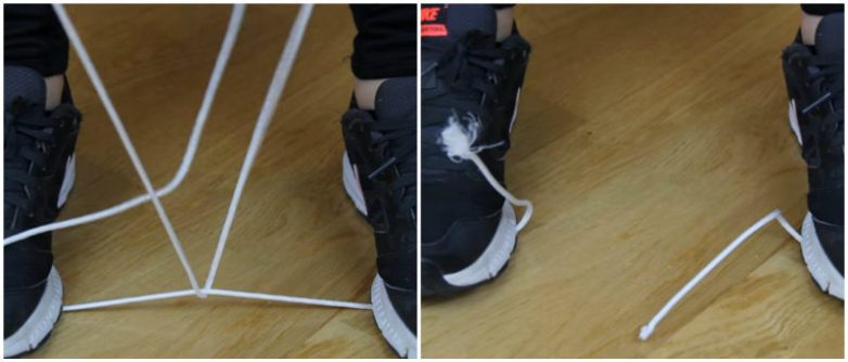 Если нужно разрезать верёвку, а рядом нет инструмента