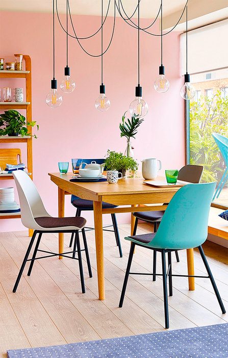 Когда дни становятся короче, приходится думать о дополнительном освещении. «Голая» лампочка-подвес — модный путь к свету. Сгруппируйте сразу несколько подвесов в обеденной зоне — и ваши вечера станут ярче!