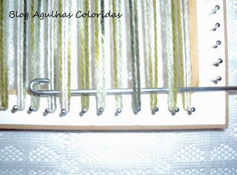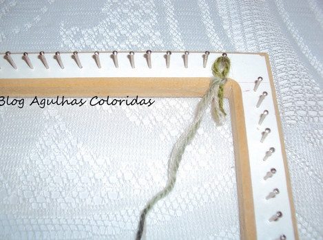 Смотрим начало плетения. Привязываем нитку к гвоздику и протягиваем к противолежащему