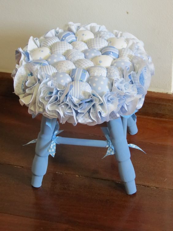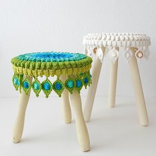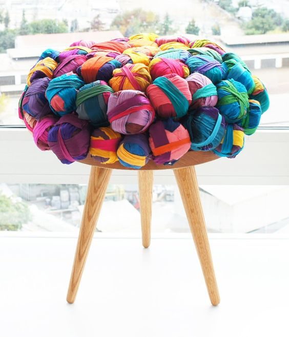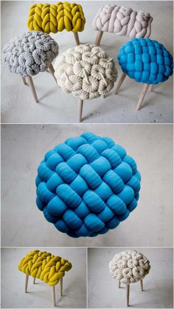 Украсить табуреты и простые стулья можно чехлами, сделанными своими руками: вязаными, сшитыми, плетёными. Идей существует великое множество!