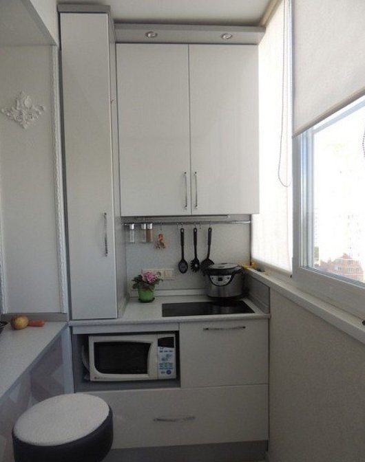 Если балкон у вас рядом с кухней — вынесите туда холодильник. Да, придется немного побегать, но зато у вас на кухне будет гораздо больше места