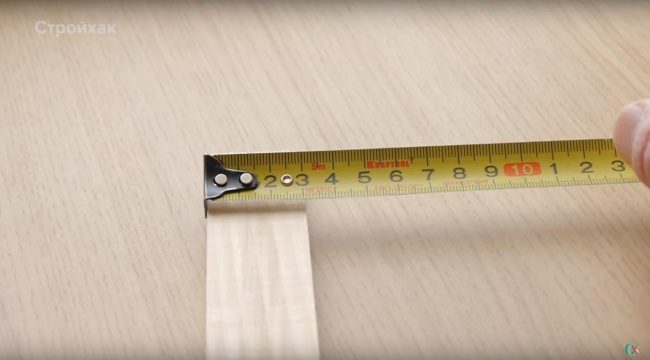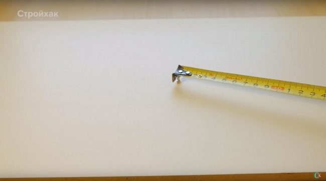 Можно также воспользоваться малярной лентой. Отрезаем от нее кусочек и проводим на ней пару измерений в противоположных направлениях.
