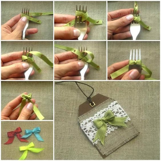 Бумажная или атласная лента, кружево, мешковина — все это вместе или по отдельности пригодиться для работы. Не лишними окажутся также ножницы, клеевой пистолет, иголка с нитками и зажимы для временной фиксации.