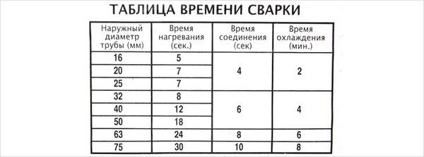 Обычно в инструкции к паяльнику идет таблица с диаметром труб и временем нагрева, которой нужно следовать. При недостаточном прогреве или избыточным перегреве материалов в процессе работы образуется сварной брак, который может проявиться не сразу.