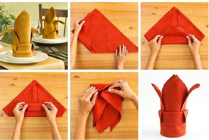 Для этого не потребуется никаких специфических материалов: всё, что вам нужно — это салфетки и поэтапные мастер-классы, как их красиво сложить.