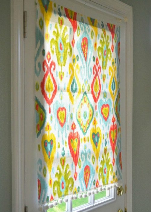 Простая яркая штора, даже закрепленная на двери, придаст новый облик вашему дому.