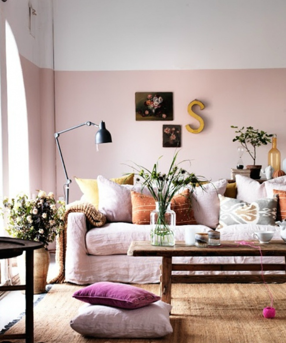 Если вы покрасите стену на 2/3 снизу более темным оттенком, потолки будут казаться выше.