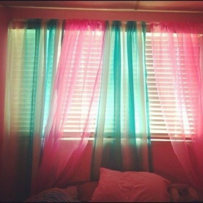 Обычное чередование цветного тюля придаст комнате нарядный вид.