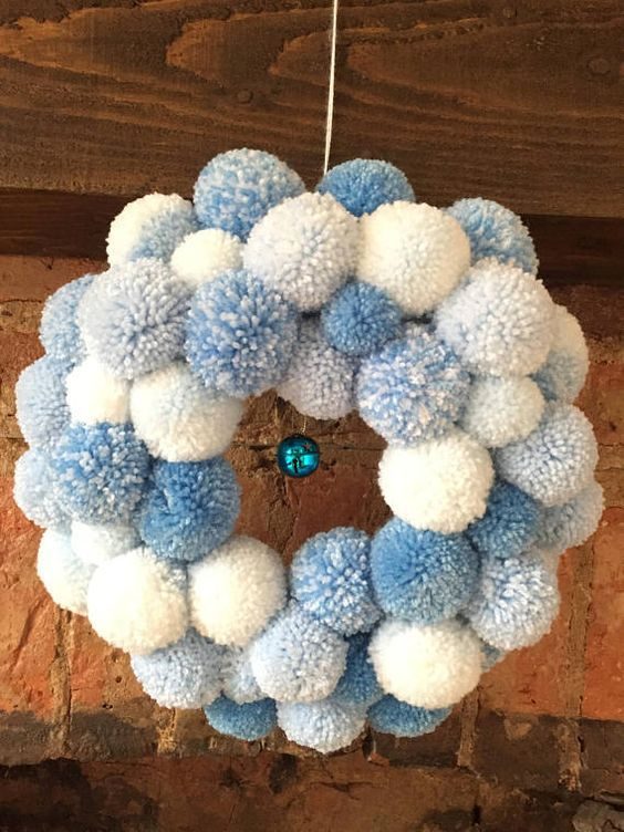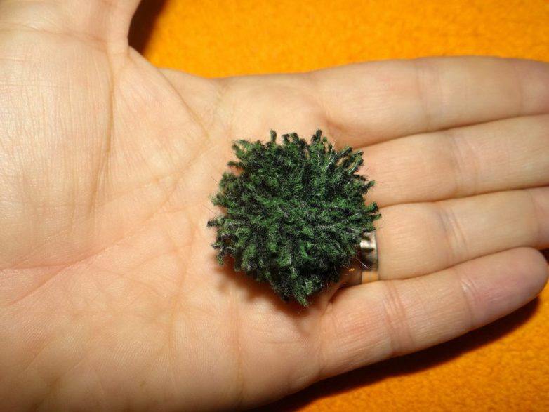 Оптимальным будет сделать порядка 15 помпонов разного размера (покрупнее для основания и поменьше для верхушки). Количество оборотов вокруг вилки определяет размер помпона: для маленького достаточно и 50, а 70-100 оборотов дадут уже плотный, крупный помпон.