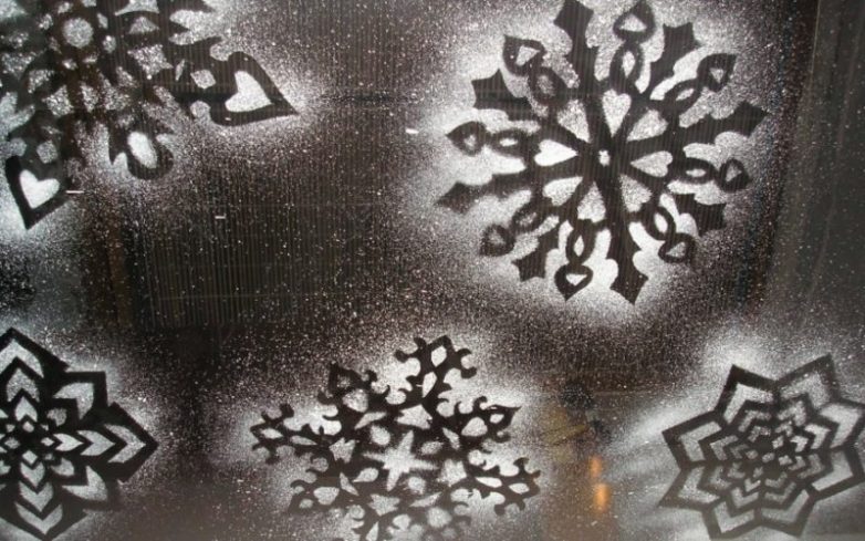 4. Осталось лишь отклеить бумажные трафареты. Чудесный снежный декор окон готов! После праздников его очень легко убрать обыкновенной водой и губкой.