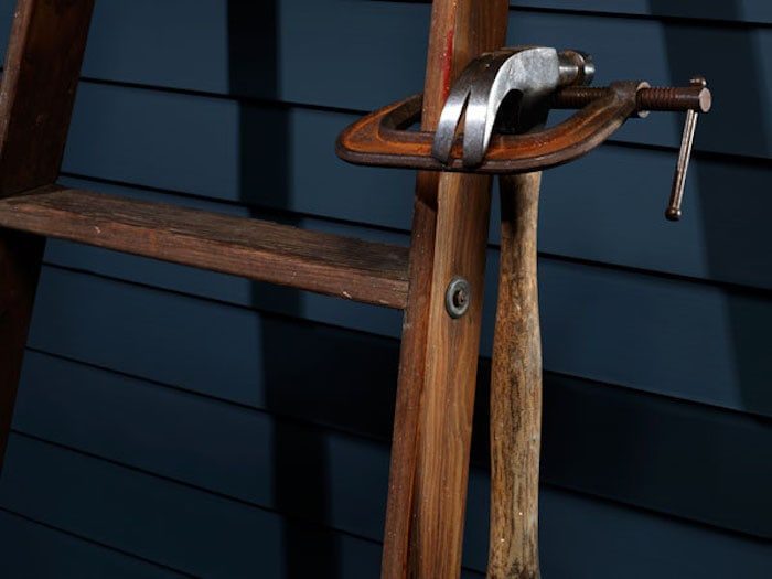 Чтобы вам было удобно работать на лестнице, прикрепите к краю струбцину, которая будет держать ваши рабочие инструменты.