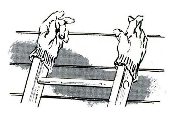 Чтобы предотвратить царапины на фасаде из-за лестницы, наденьте на неё перчатки.