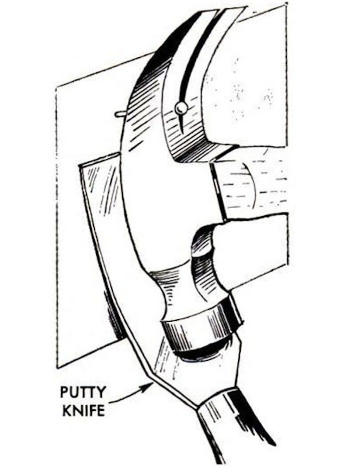 Поставьте шпатель под молоток, чтобы защитить стены при демонтаже гвоздей.