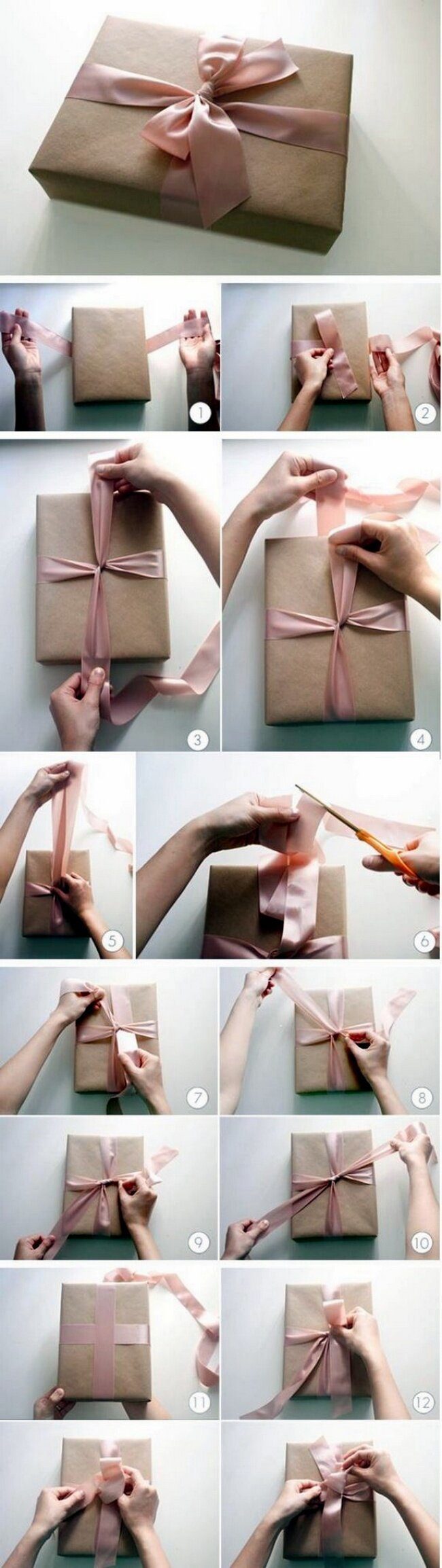 Оберните коробку с подарком по приведенной схеме и декорируйте