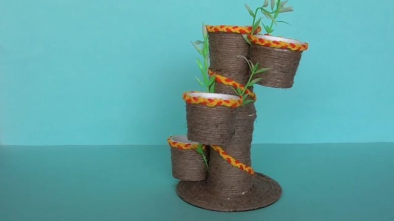 Кто бы мог подумать, что из одноразовых стаканчиков и джутового шпагата можно сотворить целую композицию! И она будет служить не просто красивым декором, но и полезным органайзером.