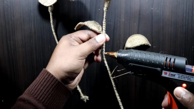 джутовый шпагат; мешковина; металлическая проволока; горячий клей-пистолет; ножницы.Приступаем к работе: