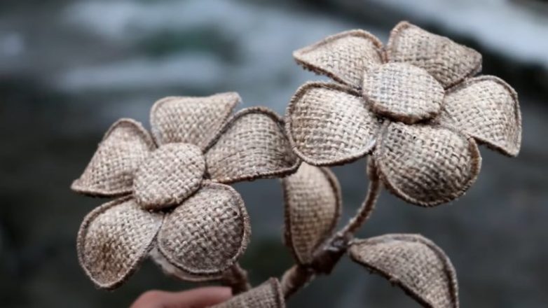 Оригинальные цветы из мешковины
