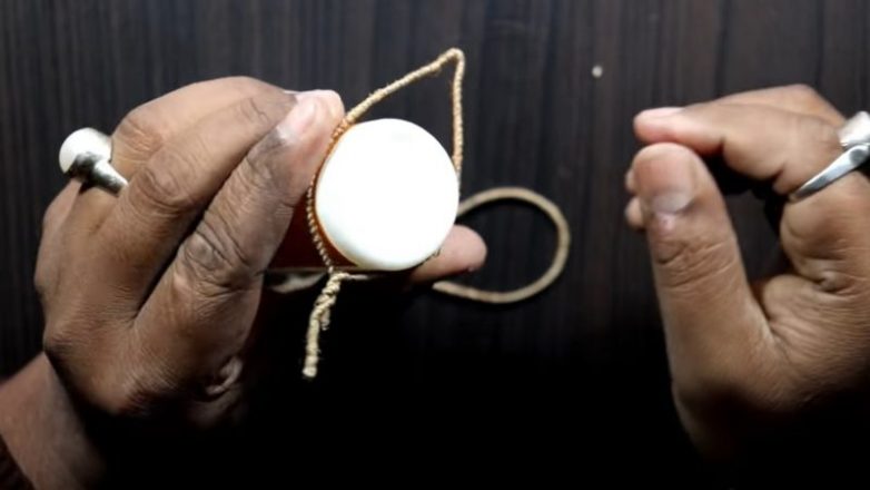 2. С помощью любой удобной вещи (например, бутылочкой клея ПВА) формируем две заготовки: одну круглую и одну вытянутую, в форме лепестка.