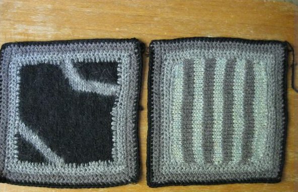 После высыхания клея (около часа) можно продолжить обработку квадратов-обрезку по ЧЁРНОЙ линии. Далее продолжить работу как обычно-обвязка до размера и т.д. Заготовки -следующее фото.