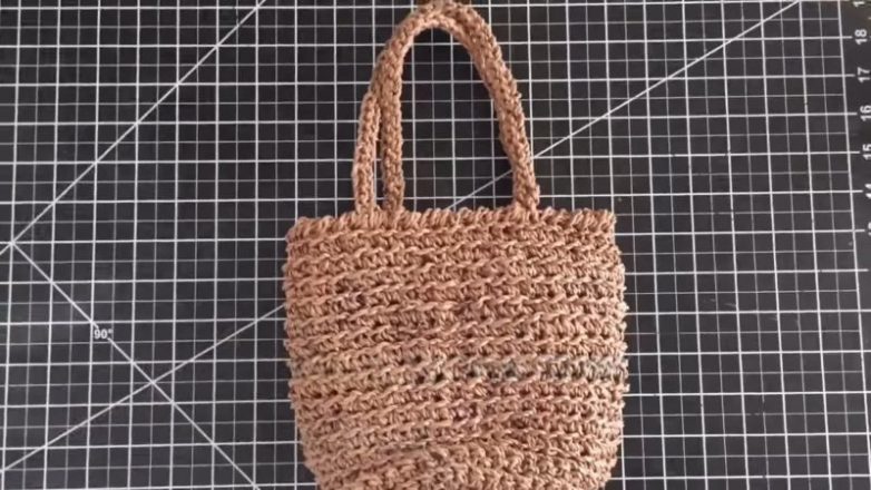 Сматываем пряжу в клубок и вяжем сумку, как обычно, крючком.