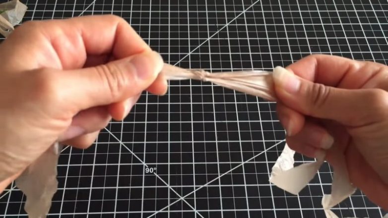 Ещё раз сворачиваем пакет, разрезаем пополам.