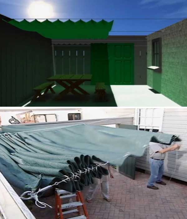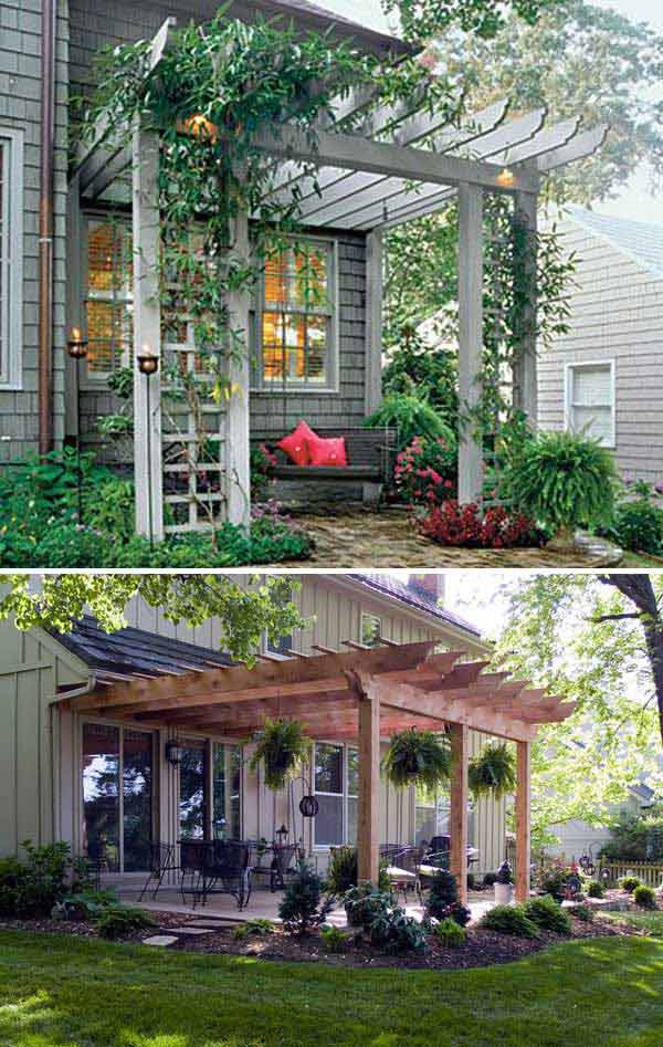 Есть среди них такие, которые можно реализовать, используя ставшие ненужными вещи. Портьеры, жалюзи, одеяла, пледы и прочие материалы, которые легко дополнить креплениями и превратить в тенты — далеко не единственный способ уберечься от палящего солнца. Не менее интересны и разноплановые живые изгороди. Тень могут обеспечить плющ, вьющиеся цветы, виноград или посаженные в зоне предполагаемого отдыха деревья с раскидистой кроной. Стараниями дачников на участках появляются разноплановые арки. Есть среди них как сплошь укрытые зеленью, так и заботливо сплетенные из лозы или бамбука. Взгляните на уже реализованные удачные идеи, возможно, вы захотите сделать на своем участке что-то подобное.