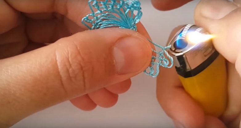 Обрежь нить почти у самого края и аккуратно прижги ее зажигалкой, чтобы изделие не распустилось. Хорошенько выровняй кружево. Можно также разгладить его утюгом. Будь осторожен, если нить синтетическая, то нужно проглаживать кружево через хлопковую ткань.