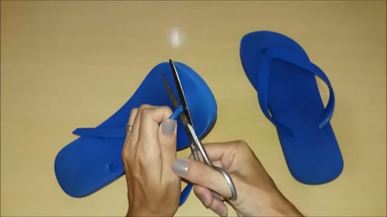 1. У шлепанцев отрежьте верхнюю часть, оставляя только подошву.
