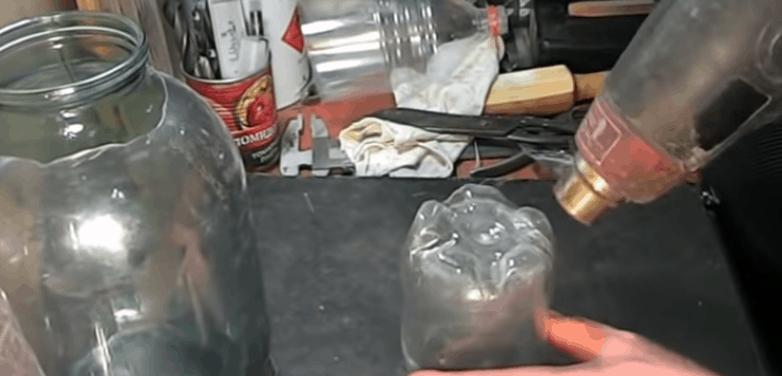 Для начала помещаем банку внутрь баклажки.
