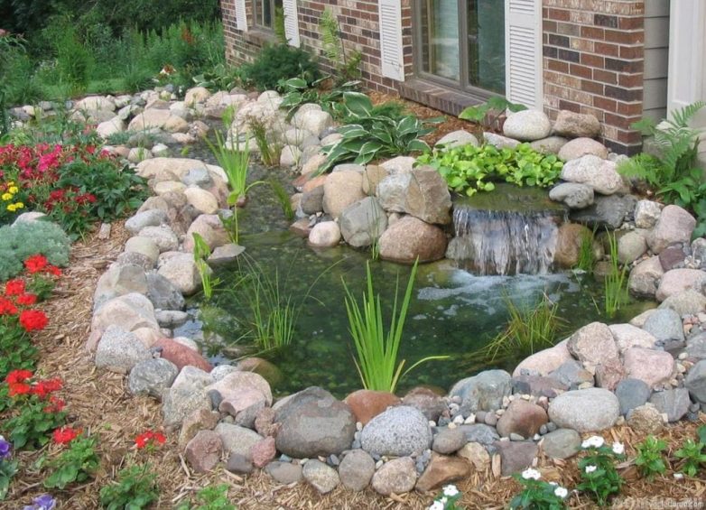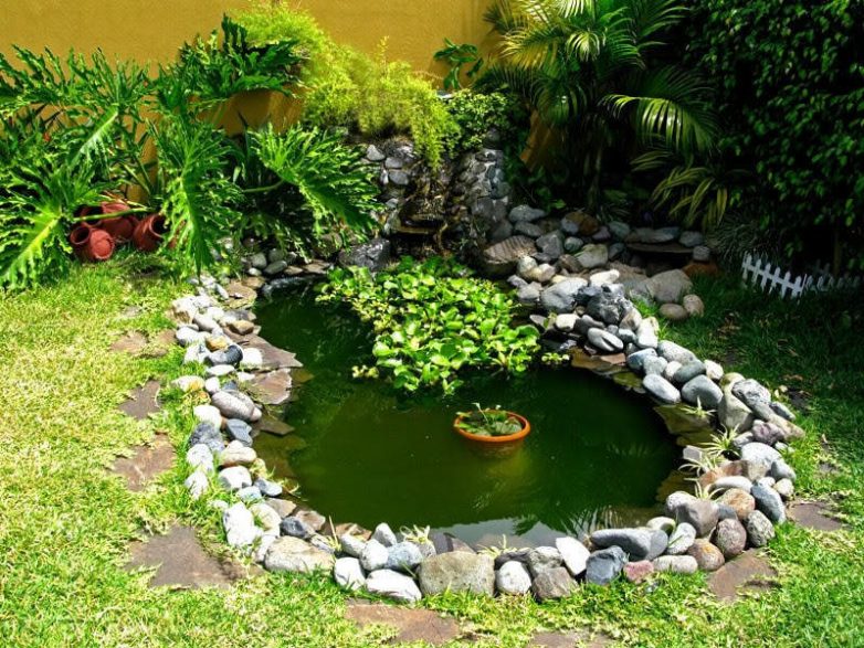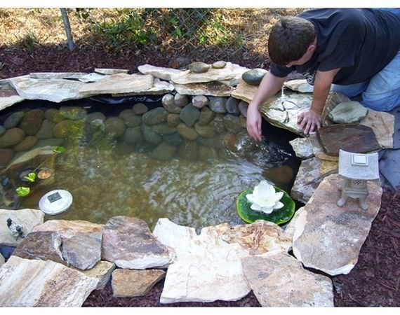 Поверх можно посадить растения. Если хочется сделать пруд с фонтаном, то в воду необходимо будет установить насос.