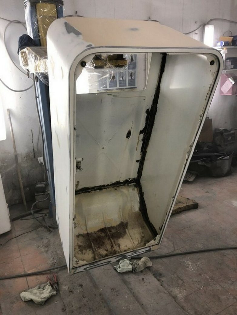 От автора: «В одной из мастерских хозяева оставили старый холодильник ЗИЛ-Москва. Ремонтировать раритет 1968 года выпуска оказалось слишком дорого. Но нашелся мастер, который выкупил старичка всего за 500 рублей и превратил его в настоящий шедевр.»